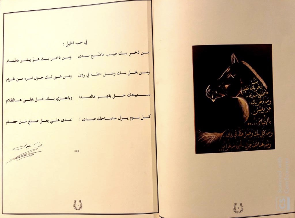 و أخذت الخيل العربية جزءاً كبيراً من ريشة و حرف و إبتكار الفنانة هديل، وجسدت لوحاتها الفنية و كلماتها الشعرية العراقة و الأصالة لتترجم بها جمال و حب الجواد العربي علي صفحاتها المضيئة.